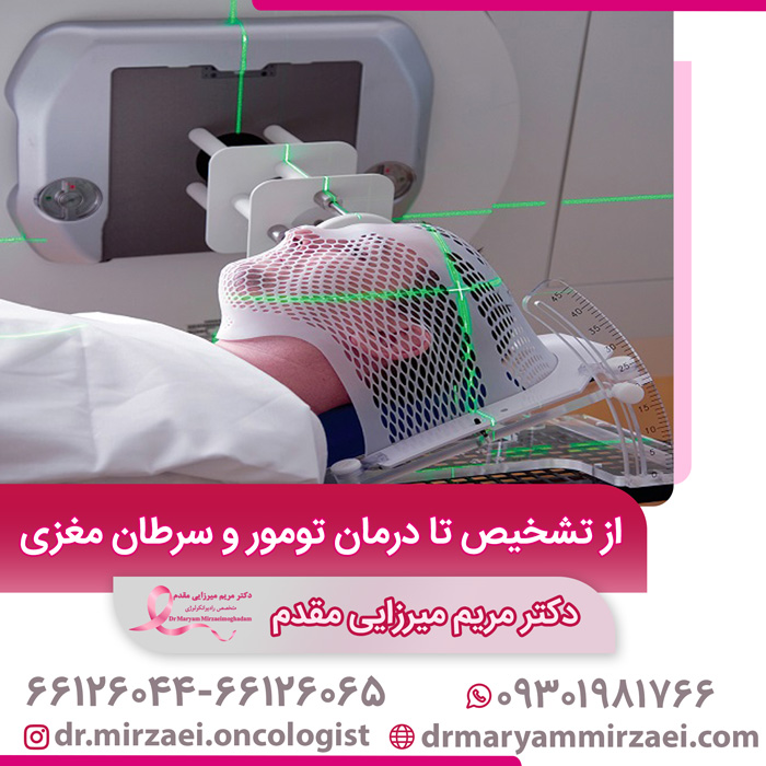 انجام شود و یا در موارد بسیار نادر، دستگاه رادیواکتیو در داخل بدن و در نزدیکی تومور مغزی (Brachytherapy) قرار میگیرد. عوارض جانبی پرتودرمانی به نوع و دوز اشعهای که دریافت میکنید بستگی دارد. عوارض جانبی رایج شامل خستگی، سردرد، از دست دادن حافظه، تحریک پوست سر و ریزش مو است.