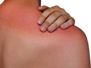التهاب و قرمزی پوست در ناحیه درمان کاملا طبیعی است. این حالت ممکن است مانند حالت آفتاب سوختگی و قرمزی، خشکی، تیره شدن و پوسته پوسته شدن تظاهر کند و در مناطق و پوست های حساس میتواند مانند سوایر سوختگی ها تاول یا ترشح ایجاد کند. این تغییرات حدود 2 الی 4 هفته پس از شروع درمان بسته به حساسیت پوست و نوع پرتو و طرح درمان میتواند بروز کند.